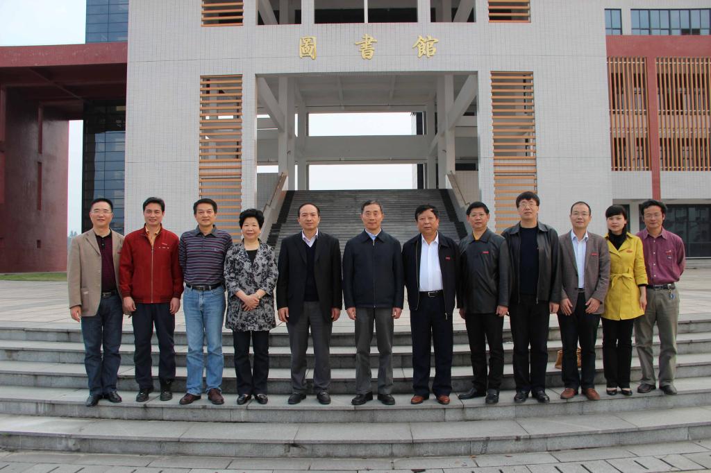 2013年4月23日北大原党委书记闵维方等一行与我校相关人员在图书馆前合影