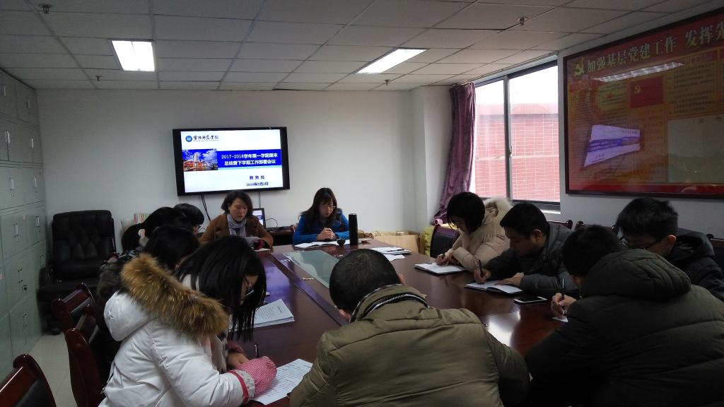 2月2日下午,教务处在行政楼401会议室召开2017-2018学年第一学期工作总结暨下学期工作部署会,教务处全体人员参加会议,会议由教务处副处长谢新暎主持。