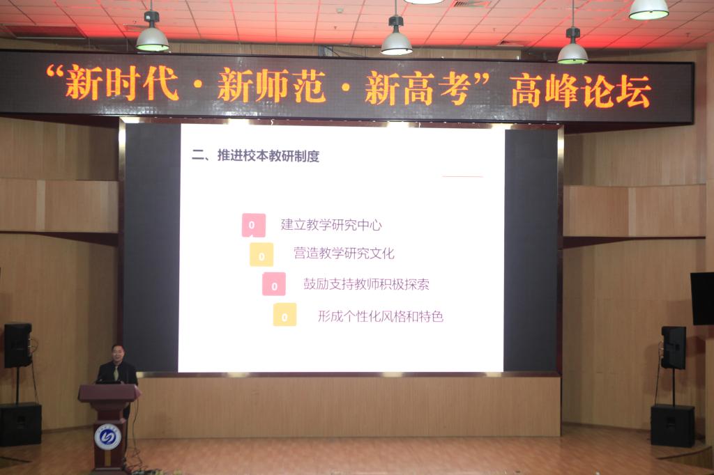 夏良玉在致辞中简要介绍了学校的办学历史和发展情况,重点介绍了学校围绕写好“师范性、应用性、地方性”所取得的改革发展成果。他指出,本次峰会将促进高校进一步落实立德树人根本任务,促进高中校科学主动地应对新高考,搭建新时代师范院校教育改革和政府、高校、中小学校协同育人,提高人才培养质量,推动师范教育迈上新征程、实现新跨越。我们将以此为契机,认真做好师范专业认证工作,不断深入人才培养模式改革,加强教师队伍建设,不断完善保障设施,培养更多“下得去、留得住、教得好”的四有好老师,为引领和服务基础教育作出新的更大贡献。