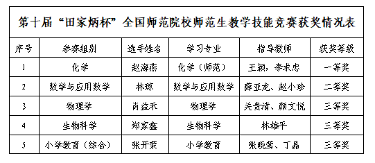 学校高度重视本次竞赛,积极组织开展学校预赛,选拔优秀选手,组建指导团队,有针对性开展教学指导与训练。本次成绩的取得是我校推进教师教育改革的重要成果,充分展示了我校师范生教学实践能力培养的成效。