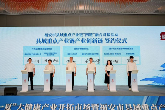 6月6日,“全家福安・健康一夏”大健康产业开拓市场暨福安市县域重点产业链“四链”融合对接会在东百假日酒店举行。此次活动由福安市政府牵头,聚焦电机电器、不锈钢等重点产业链,以“产业链、创新链、资金链、人才链” 四链融合为核心,旨在通过政产学研用协同创新,破解产业技术瓶颈、拓展市场发展空间。我院张杰老师代表院方出席,在县域重点产业链产业创新链签约仪式上,与巨龙电机(花椒直播)有限公司就“基于光伏太阳能水泵研发项目”完成产学研合作签约。该项目既助力福安市电机电器产业与高校创新资源深度融合,为产业创新发展注入新动能,又推动学院学科建设与地方产业需求深度适配,促进“产教融合”人才培养模式深化。