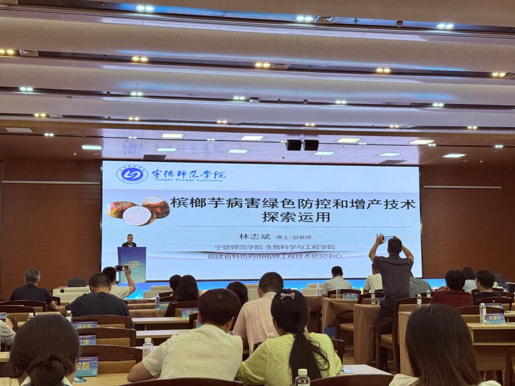 作为全省8所受邀高校之一,我校科技特派员林志斌博士在成果推介环节,围绕槟榔芋软腐病生物防治及增产技术作专题分享。他系统介绍了福鼎槟榔芋软腐病生物防治技术的研发背景、技术突破与实践成效,凭借针对性强、应用价值高的技术成果,赢得与会农业企业的广泛关注与积极反响。