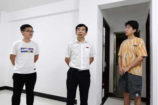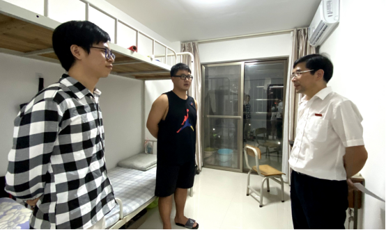 9月17日晚,魏远竹校长到研究生宿舍看望返校的联合培养硕士研究生,学工处、资后处、科研处等部门负责人陪同。