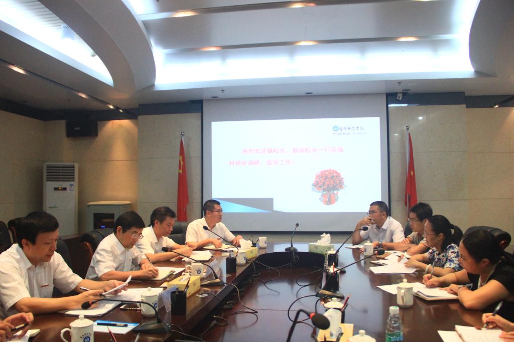 科研处副处长张光英教授首先向两位领导及调研组一行的到来表示热烈的欢迎,对校领导及各部门长期以来给予科研处的帮助和支持表示衷心的感谢。随后张光英副处长就学校科研工作的现状、取得的成绩、存在的不足以及人员编制、岗位设置等情况向调研组作了汇报与说明。希望学校及各部门能够进一步对科研工作给予大力的支持,通过各部门联动,共同推进学校的科研创新、成果转化和服务地方工作,从而为学校和区域发展服务。