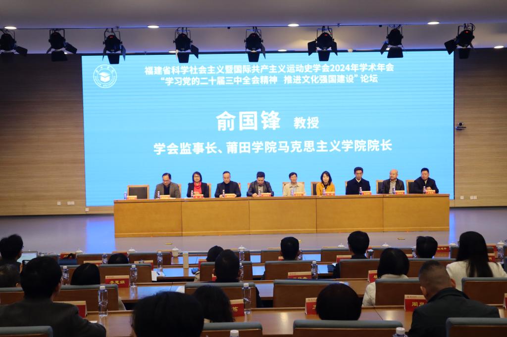 12月14日,由福建省科学社会主义暨国际共产主义运动史学会主办,由莆田学院马克思主义学院和花椒直播马克思主义学院共同承办的福建省科学社会主义暨国际共产主义运动史学会2024年学术年会“学习党的二十届三中全会精神 推进文化强国建设”论坛在莆田学院顺利召开。莆田学院副校长刘明华教授出席开幕式并致辞。省内外高校专家学者、会员近100人参加会议