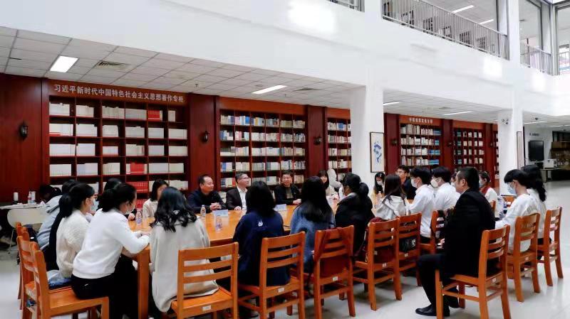 开班仪式后,江潮炳在图书馆一楼阅览室马列专柜前与新老学员代表围绕青年学子成长成才进行深入的座谈交流。他希望广大学员认真学习马克思主义理论中国化的最新成果,立大志、明大德、成大才、担大任,通过不断的学习和实践,做一名“模范表率、堪当重任”的青年马克思主义者,走在青年前列、走在时代前列,努力成长为合格的新时代中国特色社会主义建设者和接班人,以实际行动迎接党的二十大胜利召开!学员们纷纷表示,要肩负新时代大学生的使命和责任,认真学习习近平新时代中国特色社会主义思想,增长本领,将所学知识转化为行动更好认识和改造现实世界,努力成长为真正的青年马克思主义者。