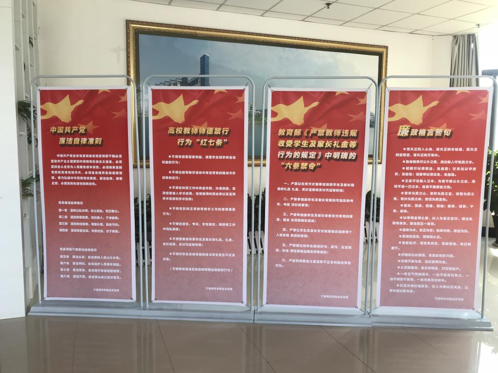 此外,为进一步推进机关党委廉政文化建设,加强对党员干部的廉政警示教育,“七一”前夕,机关党委精心制作廉政专栏,重点向机关全体党员、干部重申“中国共产党廉洁自律准则”、“高校教师师德禁行行为‘红七条’”、“教育部《严禁教师违规收受学生及家长礼金等行为的规定》中明确的‘六条禁令’”等条例规定,推进机关作风建设、纪律建设,营造风清气正的良好氛围,推动全面从严治党向纵深发展。