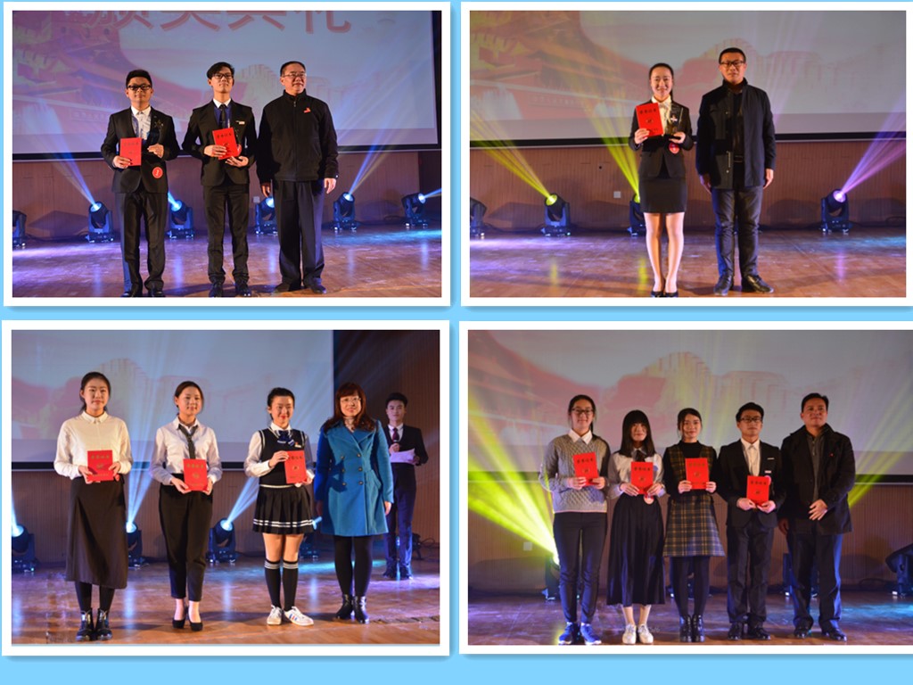 最后,荣怡飞、杨春生同学表现优异,难分伯仲,共同斩获一等奖。陈美玲同学荣获二等奖。吕洁惠、于洋、杨柳三位荣获三等奖。马勤勤、沈舒敏、林雅萍、王佳琦同学荣获优秀奖。评委老师为获奖同学颁发了证书和奖杯并合影留念。