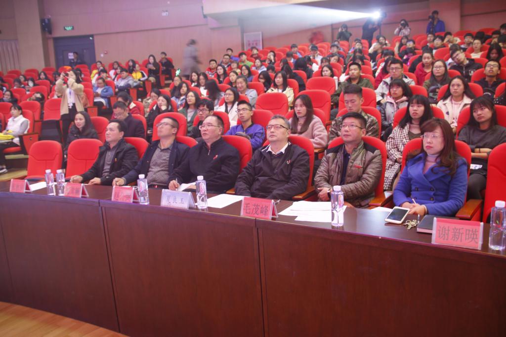 12月8日下午,“学习青年榜样习近平,树立青年正确成才观”宁师青年学习党的十九大精神主题演讲分享会在我校东侨校区图书馆报告厅举行。校党委书记夏良玉出席了分享会。校党委宣传部部长赵公弼、学生工作处处长毛茂峰、马克思主义学院副院长郑常鳜、教务处副处长谢新暎和校团委副书记张秋良担任本次比赛的评委,现场共400余名师生参与观看了比赛。