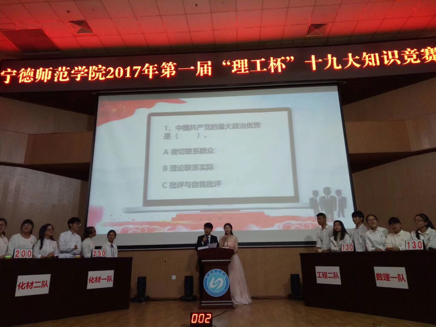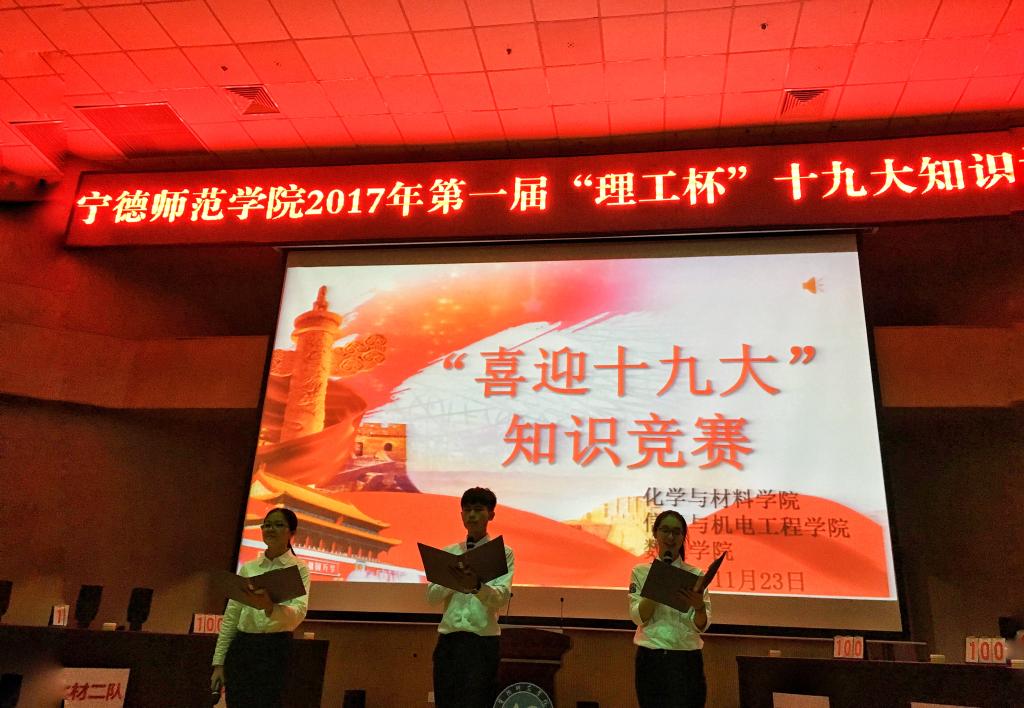 为迅速掀起广大学生认真学习宣传贯彻“十九”大精神热潮,切实把全校师生思想和行动统一到党的十九大精神,把各方面力量凝聚到十九大决策部署上,在学校落地生根,形成生动实践,11月23日晚,由化学与材料学院、信息与机电工程学院及数理学院联合主办花椒直播“理工杯”十九大知识竞赛在校图书馆报告厅举行。竞赛由化学与材料学院团委学生会承办。