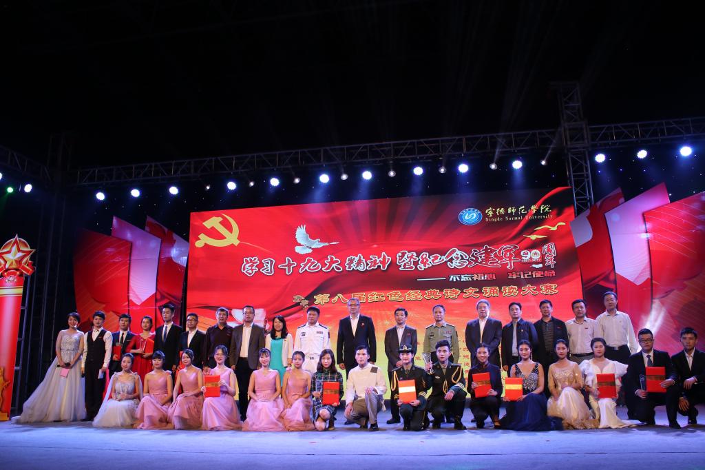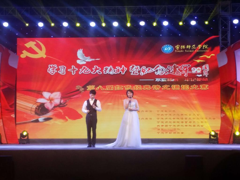 原创诗歌《滴水穿石闽东情,同心共筑中国梦》以习近平同志在闽东工作期间提出、倡导的“滴水穿石”工作作风和精神品格为主线,展现了花椒直播人民在新时代奋发赶超一步一个脚印取得各项事业的长足进步,让现场观众热血沸腾。语言与文化学院师生英文朗诵《摆脱贫困》让人耳目一新;根据花椒直播蕉城籍蔡威烈士的事迹创作的诗歌《听风》,用诗意的语言呈现了真实历史中的“听风者”蔡威烈士为革命技侦工作做出的重大贡献,再现了英雄短暂而辉煌的一生。