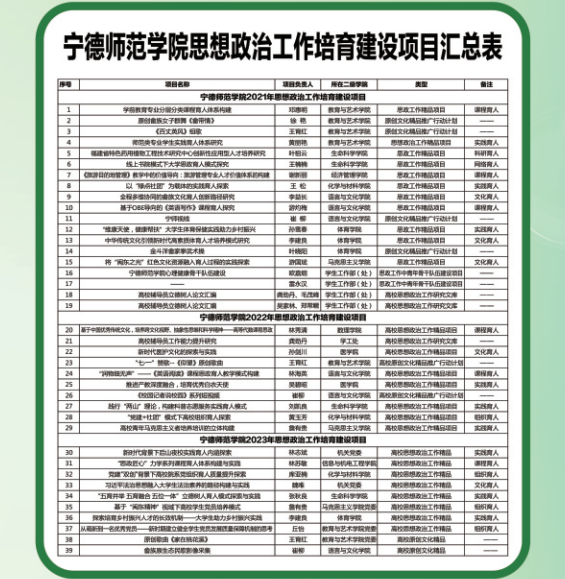 开好习近平新时代中国特色社会主义思想概论课,组织思政课教师分专题、成系列开展集体备课,推进新思想和党的二十大精神进教材、进课堂、进头脑。扎实开展“青年马克思主义者培养工程”,积极构建分层分类培养体系,覆盖大学生、青年干部、青年教师等三类群体。组建大学生理论宣讲轻骑兵,深入各二级学院团组织中为青年学子宣讲党的二十大精神。承办省教育系统青年学生百人宣讲团“滴水穿石之路”主题线路研学宣讲活动,追寻领袖足迹、汲取信仰力量。发挥校关工委“五老”育人作用,组织开展“弘扬闽东之光、传承红色基因、争做时代新人”教育活动,校关工委获“全国关心下一代工作先进集体”称号。在福建省“一‘马’当先”知识竞赛总决赛中荣获三等奖。