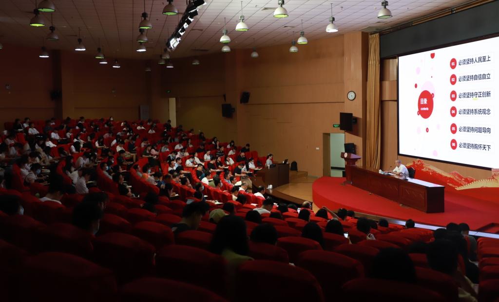 夏良玉从哲学的思维、历史的逻辑和现实的角度系统阐述了“六个必须坚持”的重要论述,号召青年师生医护员工要以开展学习贯彻习近平新时代中国特色社会主义思想主题教育为契机,深入学习把握这一重要思想的世界观和方法论,坚持好、运用好贯穿其中的立场观点方法,自觉做到“六个必须坚持”。必须坚持人民至上,想问题、做决策要坚守人民至上的立场、观点和方法,胸怀忧国忧民之心、爱国爱民之情,积极投身科技攻关最前沿、创新创业第一线、乡村振兴主战场、社会服务各领域。必须坚持自信自立,不断增强对党的价值追求和前进方向的高度政治认同,坚定对马克思主义的信仰、对中国特色社会主义的信念、对实现中华民族伟大复兴中国梦的信心,以更加积极的历史担当和创造精神为发展马克思主义作出新的贡献。必须坚持守正创新,以科学的态度对待科学、以真理的精神追求真理,自觉听党话、跟党走,在实现民族复兴的赛道上奋勇争先,跑出新时代中国青年的最好成绩。必须坚持问题导向,要增强敢于答题的担当和解题的本领,自觉摒弃骄娇二气,学会“自找苦吃”,把基层作为最好的课堂,把实践作为最好的老师,主动投身到新时代的伟大实践中去。必须坚持系统观念,要更加自觉地坚持和运用系统观念观察形势、分析问题、推动工作,善于用全面、辩证、长远的眼光看问题,把历史、现实、未来贯通起来审视,把近期、中期、长期目标任务放在“一盘棋”上谋划,统筹兼顾、综合施策。必须坚持胸怀天下,以海纳百川的宽阔胸襟借鉴吸收人类优秀文明成果,为推动人类可持续发展、构建人类文明新形态、建设更加美好的世界作出新贡献。