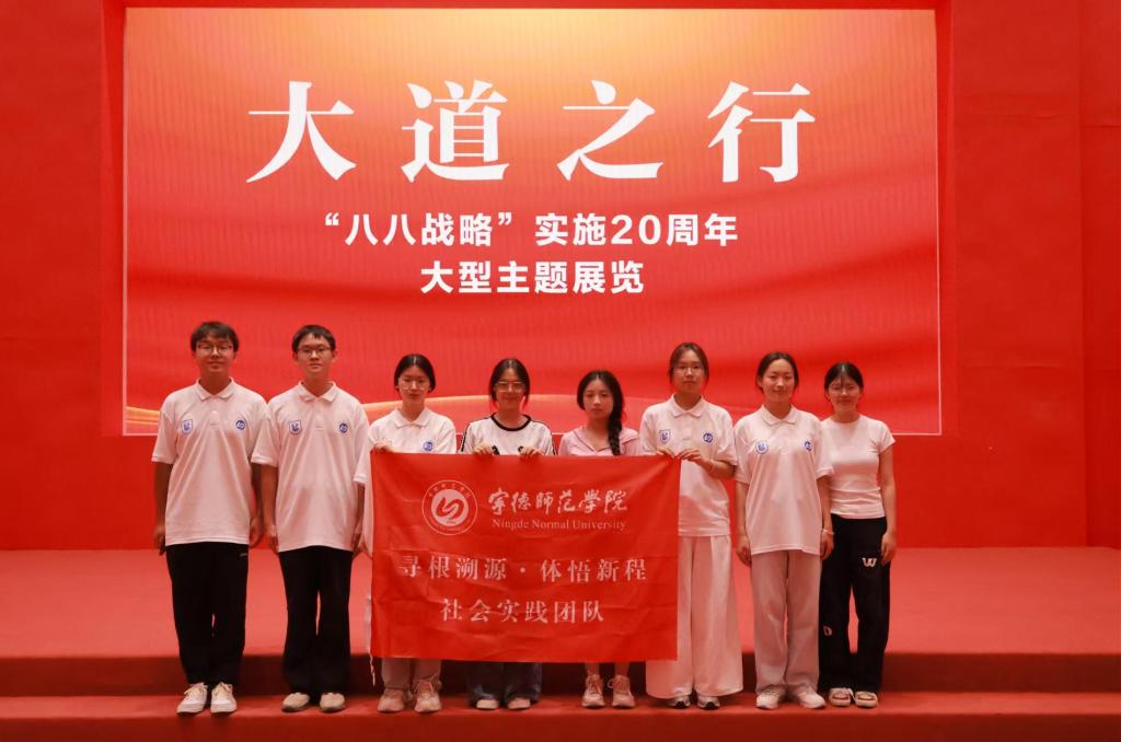 行程尾声,队员们走进浙江展览馆,参观大道之行——“八八战略”实施20周年大型主题展览。展览生动展现“八八战略”指引下浙江全领域的实践蝶变。马克思主义学院郭斌慧老师结合现场情况讲授思政课:“青年要从浙江实践中汲取战略思维智慧,将创新精神转化为服务国家发展的行动自觉。”
