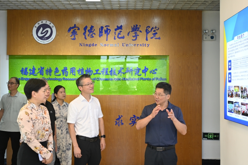 刘丹艳一行实地参观了习近平“六进宁师”主题展、“闽东之光”教育基地,走访了福建省特色药用植物工程技术研究中心,深入了解了学校的建设与发展情况。
