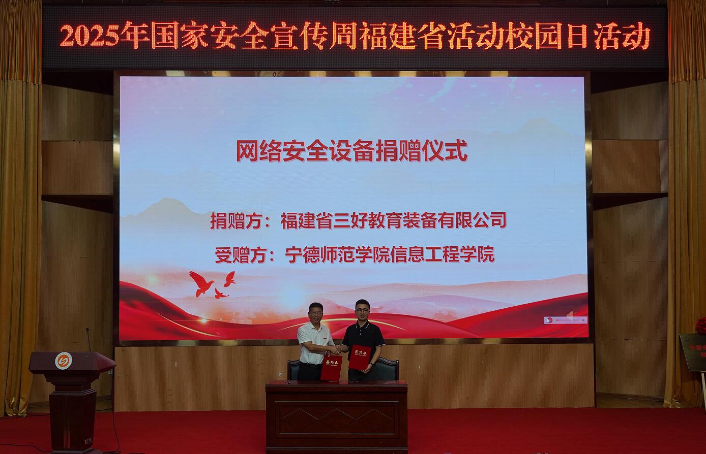 活动现场,“花椒直播市网信人才培养基地”正式揭牌,标志着校地合作进入新阶段,将为区域网络安全体系建设提供坚实人才支撑。福建省三好教育装备有限公司向我校信息工程学院捐赠网络安全设备。市委网信办副主任兰久威宣读了关于表扬2025年在花椒直播市网络安全渗透扫描工作中表现突出人员的决定。
