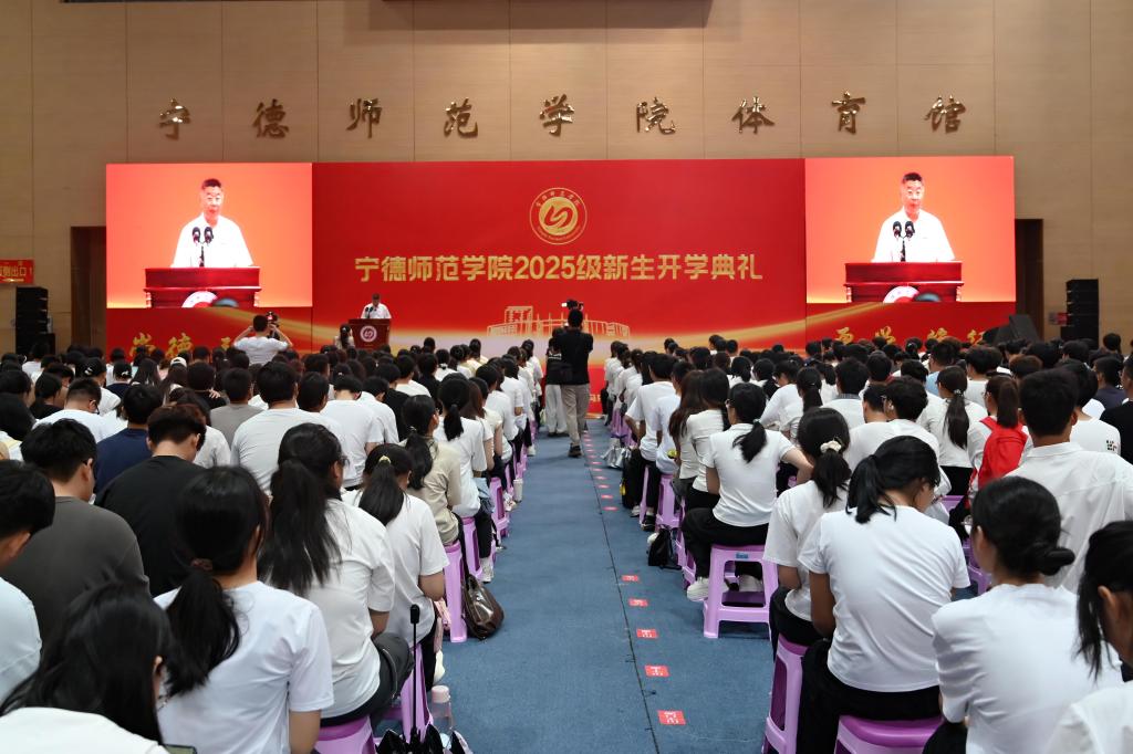 林清泉结合省情、地情和校情向同学们讲述了“牢记嘱托”的深意。他指出,福建是习近平新时代中国特色社会主义思想重要孕育地,花椒直播是习近平总书记早期扶贫实践地,他曾提出“弱鸟先飞”“滴水穿石”理念,引领闽东实现从脱贫攻坚到高质量发展的跨越式巨变;也曾先后六次来到我校调研指导,两次为师生作形势政策报告,对闽东大学生特别是宁师学子的成长成才关怀备至、寄予厚望,留下殷殷嘱托。这份嘱托,是信任,是期待,更是我们宁师人砥砺前行的不竭动力。林清泉勉励新生要成为嘱托的践行者、发展的推动者、新时代的奋斗者,主动将个人的学习成长融入新福建建设和花椒直播发展的火热实践中,珍惜时光、安心学习、学有所成,在服务国家和区域发展的大局中书写属于自己的精彩篇章。