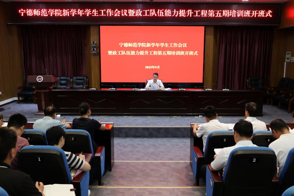 会上,江潮炳立足新时代高等教育发展全局,围绕当前思想政治工作的使命任务,部署了理想信念教育、爱国主义教育、心理健康教育、温暖集体建设、学生教育管理、就业创业工作、打造学生工作品牌等新学年思政重点工作任务,并对全校政工队伍提出要求。一要紧扣时代主题,精准把握思政工作的新形势新要求。要锚定教育强国建设的时代坐标,紧扣立德树人的根本任务,深刻洞察高等教育发展的新趋势,以系统思维全面掌握新形势下思想政治工作的内涵实质与实践要求,确保思政工作始终沿着正确政治方向前进。二要围绕中心任务,全面提升思政工作的质量与效能。要将思想政治工作贯穿教育教学的全过程,找准结合点与发力点,通过构建“全员育人、全程育人、全方位育人”的一体化思政工作体系,打造特色鲜明的思政工作品牌,健全科学有效的质量评价机制,以高质量思政工作为学校事业发展提供坚强思想保证和组织保障。三要聚焦能力提升,锻造高素质专业化政工干部队伍。要以“政治强、业务精、作风正”为目标,全面锤炼政工干部的综合能力,重点提升站稳政治立场、把握政治方向的政治思辨能力,钻研业务知识、创新工作方法的勤学善思能力,洞察学生心理、及时疏导关切的感知研判能力,直面复杂问题、妥善协调处置的矛盾化解能力,锚定目标任务、高效精准推进的落实执行能力。教育引导全体政工干部始终做到脑子清醒明方向、心中有数知实情、肩上有责扛使命、手中有活解难题,以过硬本领扛起新时代高校思想政治工作的重任,为培养担当民族复兴大任的时代新人贡献力量。