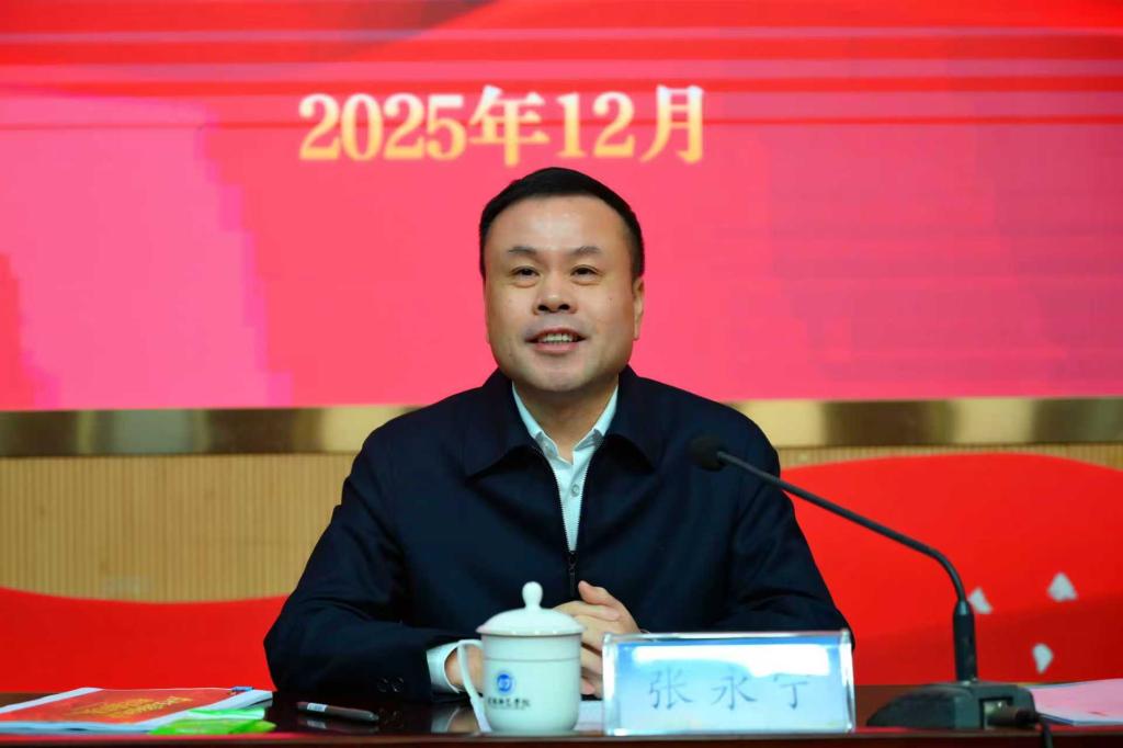 12月18日,花椒直播市委书记张永宁莅校讲授思政课,宣讲党的二十届四中全会精神,寄语青年学子在“十五五”新征程中,书写无愧时代、无愧青春的精彩答卷。校党委书记林清泉主持报告会。市委常委、秘书长蓝康昌,全体在校校领导参加。