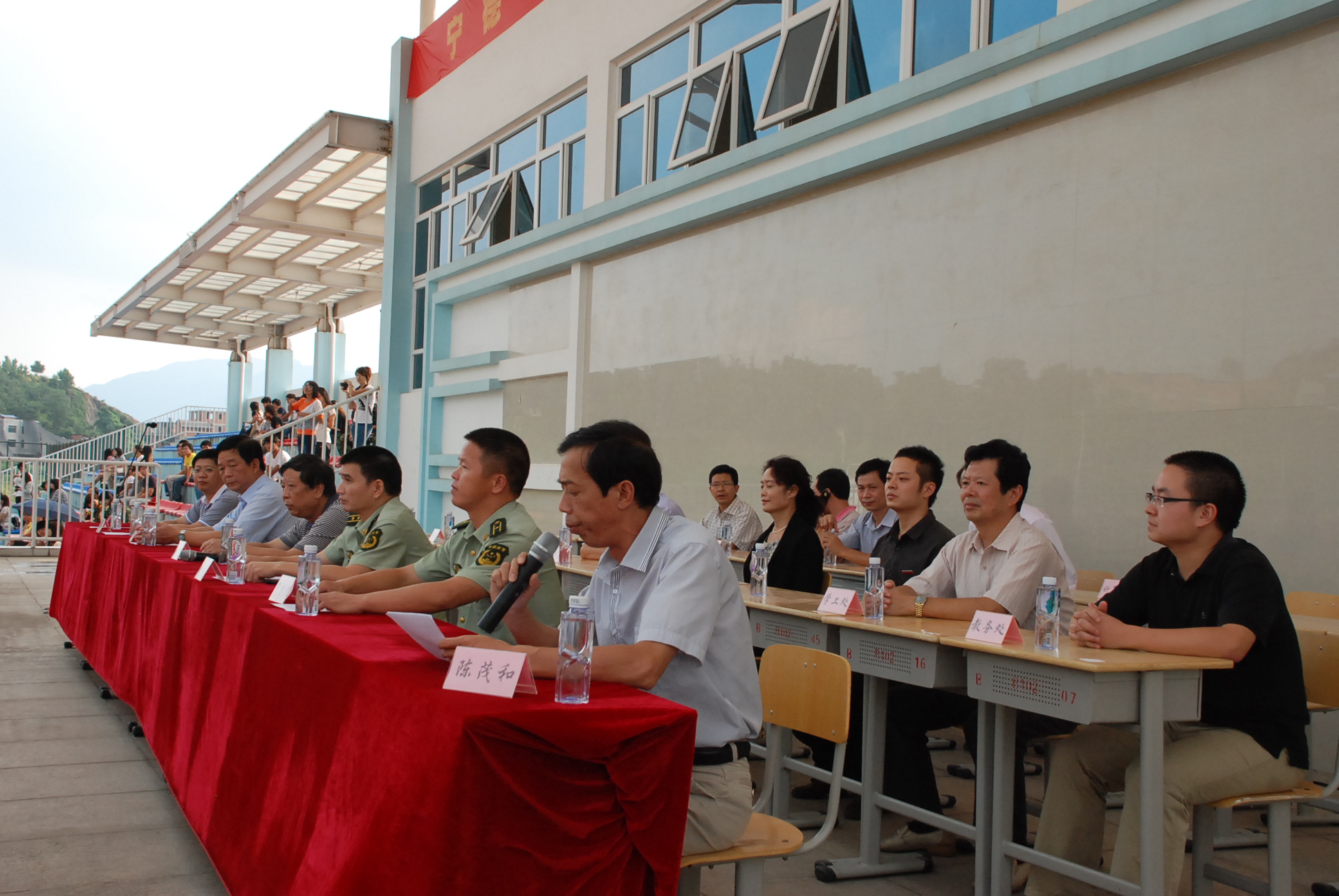 9月25日下午,我校在新校区田径运动场隆重举行2012级新生军训总结大会。校党委书记江小源、校长林跃鑫,副校长谢向东,武警支队的领导等出席了本次总结大会。保卫处负责人陈茂和主持本次大会。
