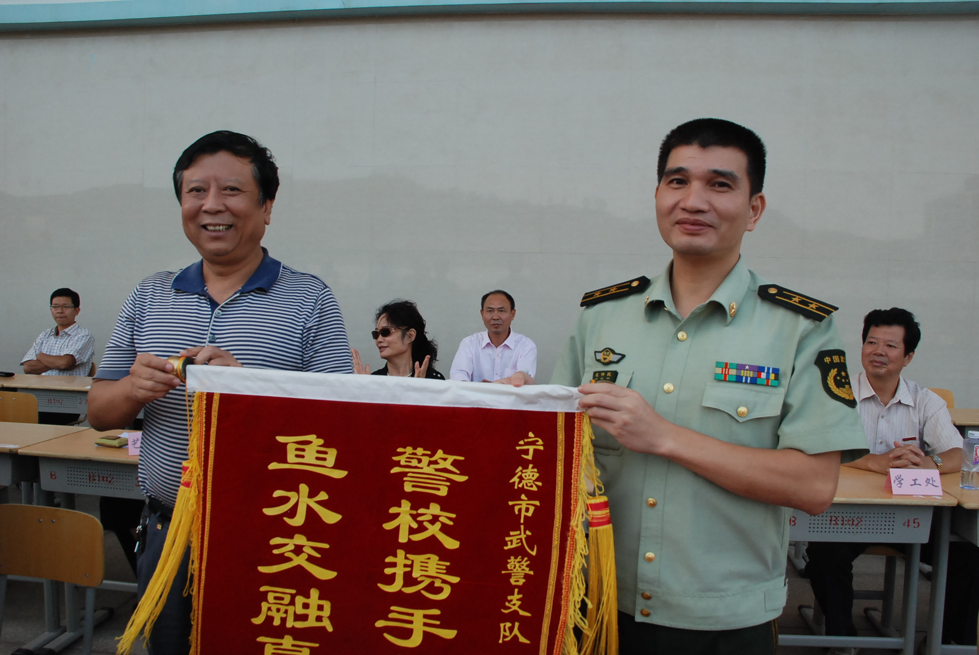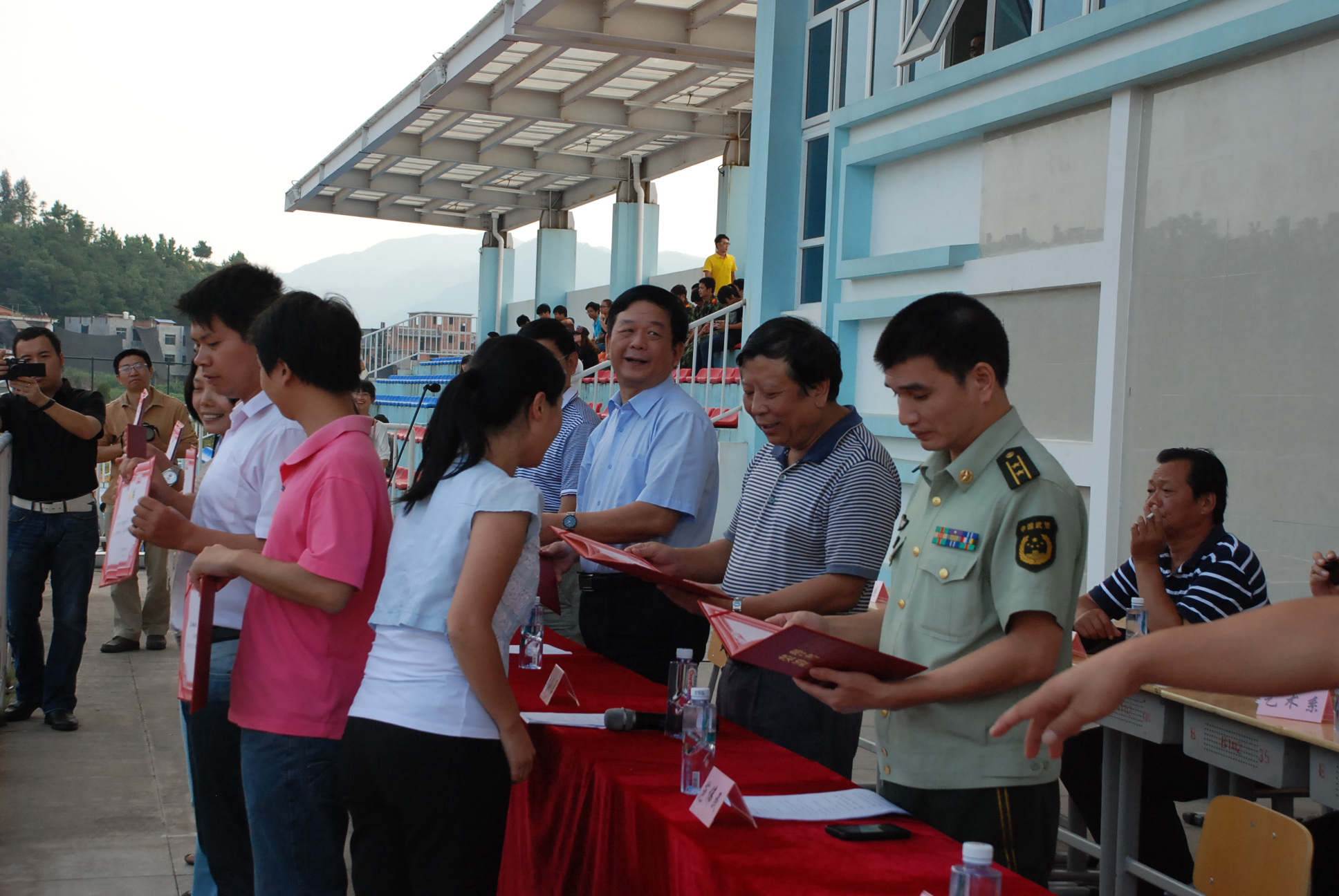 谢向东副校长讲话结束后,校保卫处负责人宣读了本次军训的表彰决定。主席台就座的领导为先进集体和先进个人代表颁发了奖状和荣誉证书。最后,江书记和林校长代表学校向花椒直播市武警支队赠送了锦旗。