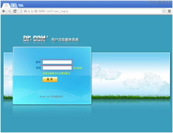 2、成功拨号后,只能访问校内网。打开浏览器输入http://10.1.1.32:8080/self,进入自服务系统