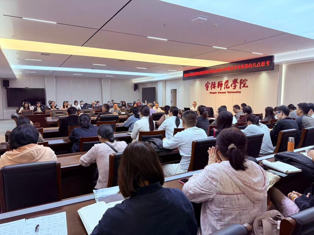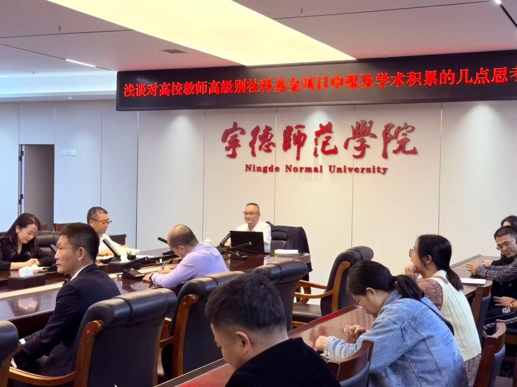 11月7日下午,我校举办2026年度国家社科基金项目申报辅导会,邀请福建师范大学社科处人文社科平台中心副主任(正处级)何瑞鑫作题为《浅谈对高校教师高级别社科基金项目申报及学术积累的几点思考》的专题辅导讲座。各相关学院、研究机构和平台教师代表80余人参加讲座,讲座由科研处处长陈峰主持