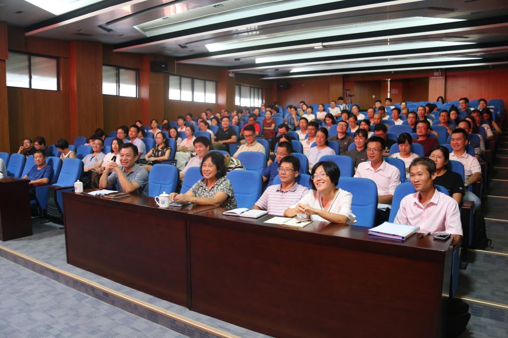 9月14日,首届国家级教学名师、广东省五一劳动奖章获得者、中山大学博士生导师王金发教授应邀莅临我校作师德教育专题报告。人事处处长林启法主持报告会,全校百余名师生参加。
