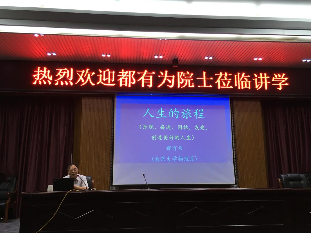 都教授以“人生的旅程”为题,从人类社会科学发展史出发,阐明了成功需要有百折不挠、迎难而上的奋进精神,他鼓励大家乐观、奋进、团结,友爱,创造美好的人生。他强调,青年是最具创新活力,也是创新能力最强的时期,希望青年师生勤奋刻苦,不畏挫折,把握住人生关键的转折点,抓住机遇,自强不息,笑傲人生。