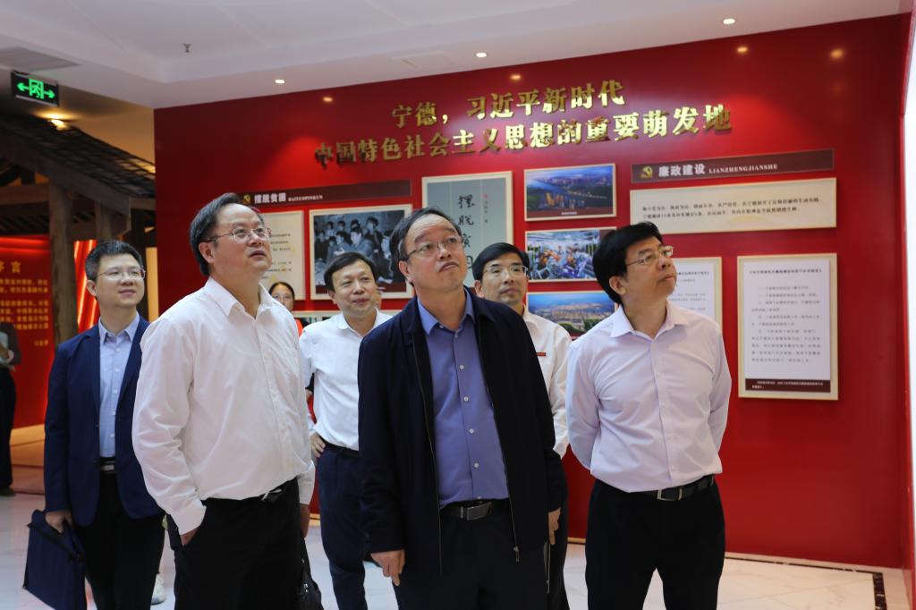 专家组一行考察了以马克思主义为指导的哲学社会科学学科基础理论研究基地——“闽东特色乡村振兴之路研究中心”的管理制度、科研成果、办公场所和资料设施等方面的情况,并参观了“闽东特色乡村振兴之路研究中心”红色文化展示基地、畲族文化展示基地和茶文化研究基地,还与研究基地的相关研究人员进行了深入交流。基地现场察看环节完成后,专家组一行在“闽东特色乡村振兴之路研究中心办公室”举行了座谈会,省社科联党组成员、秘书长、省社科规划办主任陈飞主持座谈会。