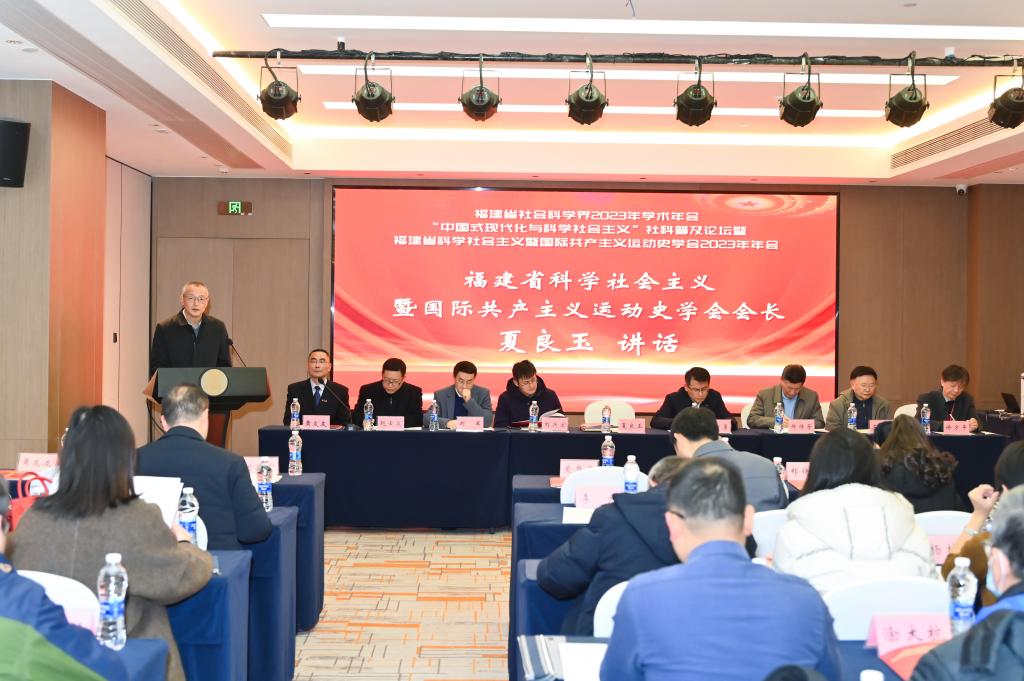 12月22日至24日,由福建省社会科学界联合会主办的福建省社会科学界2023年学术年会“中国式现代化与科学社会主义”社科普及论坛暨福建省科学社会主义暨国际共产主义运动史学会2023年年会在福州大学召开。福建省科学社会主义暨国际共产主义运动史学会会长、我校党委书记夏良玉出席会议并讲话,福州大学党委副书记黄身勇出席开幕式并致辞。福建省社会科学界联合会学会部二级调研员刘兴宏出席会议,省内外高校专家学者、马克思主义学院相关负责人及师生代表100余人参加会议。