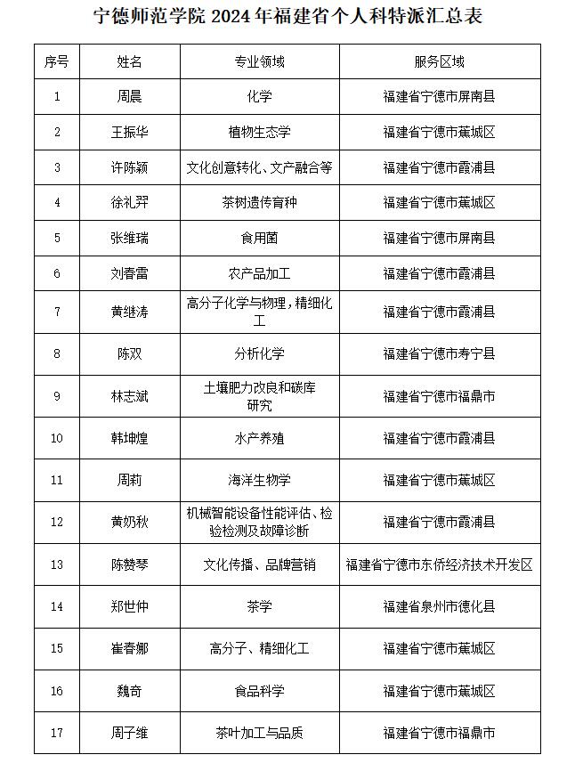 近日,福建省科技特派员工作联席会议办公室公布了2024年福建省科技特派员选认名单,我校获选认为福建省法人科技特派员,共5支团队获选认为福建省省级团队科技特派员,17位教师获选认为福建省省级个人科技特派员。