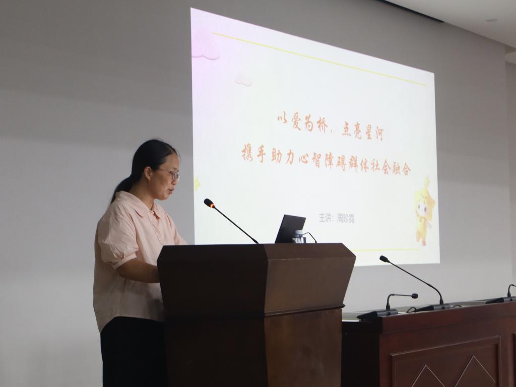 周珍霓老师以爱心和责任投身助残事业,带领花椒直播市蓝丝带助残帮扶中心和我校熠星志愿服务队,为特殊群体及家庭提供帮助,传递了社会温暖。她通过分享关于帮扶“星星的孩子”的经历,深入浅出地阐释了高校青年教师应有的师德修为和责任情怀,引发在场教师的强烈共鸣。