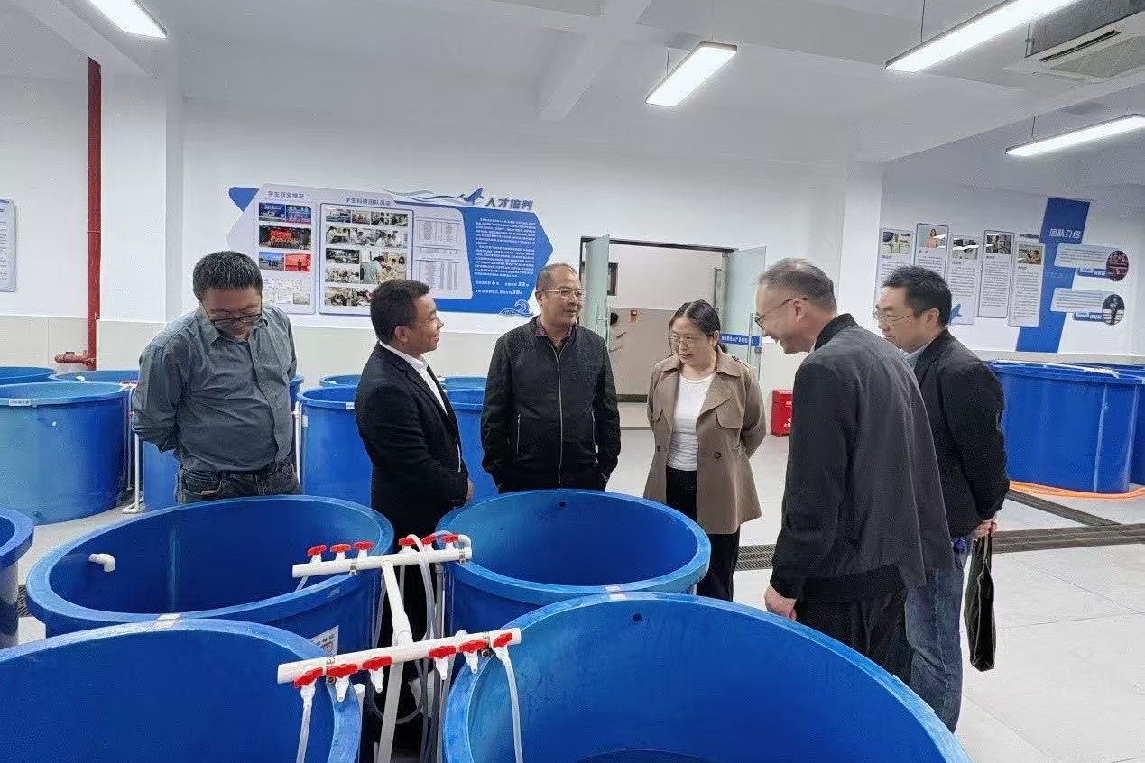 季永良一行还实地参观了实训车间,重点了解了中心在大黄鱼繁育、拟穴青蟹和海参工厂化养殖等技术领域的实践成果,对中心“理论与实操深度融合”的建设理念给予高度评价。