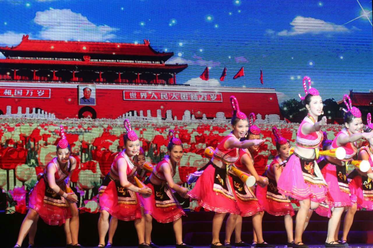 本次文艺汇演,既是向新中国67周年华诞献礼,也是向中国侨联60年光辉历程的致敬。我校代表福建省侨商会参演的节目《畲家渔鼓——一带一路谱新章》,是16名大学生艺术团舞蹈队成员,经过近一个月高强度集中排练,以畲族特色渔鼓说唱形式,为“一带一路”献礼。