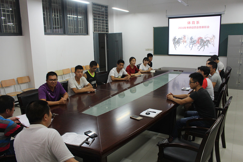 为坚定学生考研决心,激发学生考研斗志,全面备战2016考研。6月13日晚,体育系召开2016年考研动员暨表彰会。体育系党总支书记高春晗、系副主任叶晓阳、党总支副书记李建良、2013级辅导员陈萍出席会议。会议由高春晗书记主持。