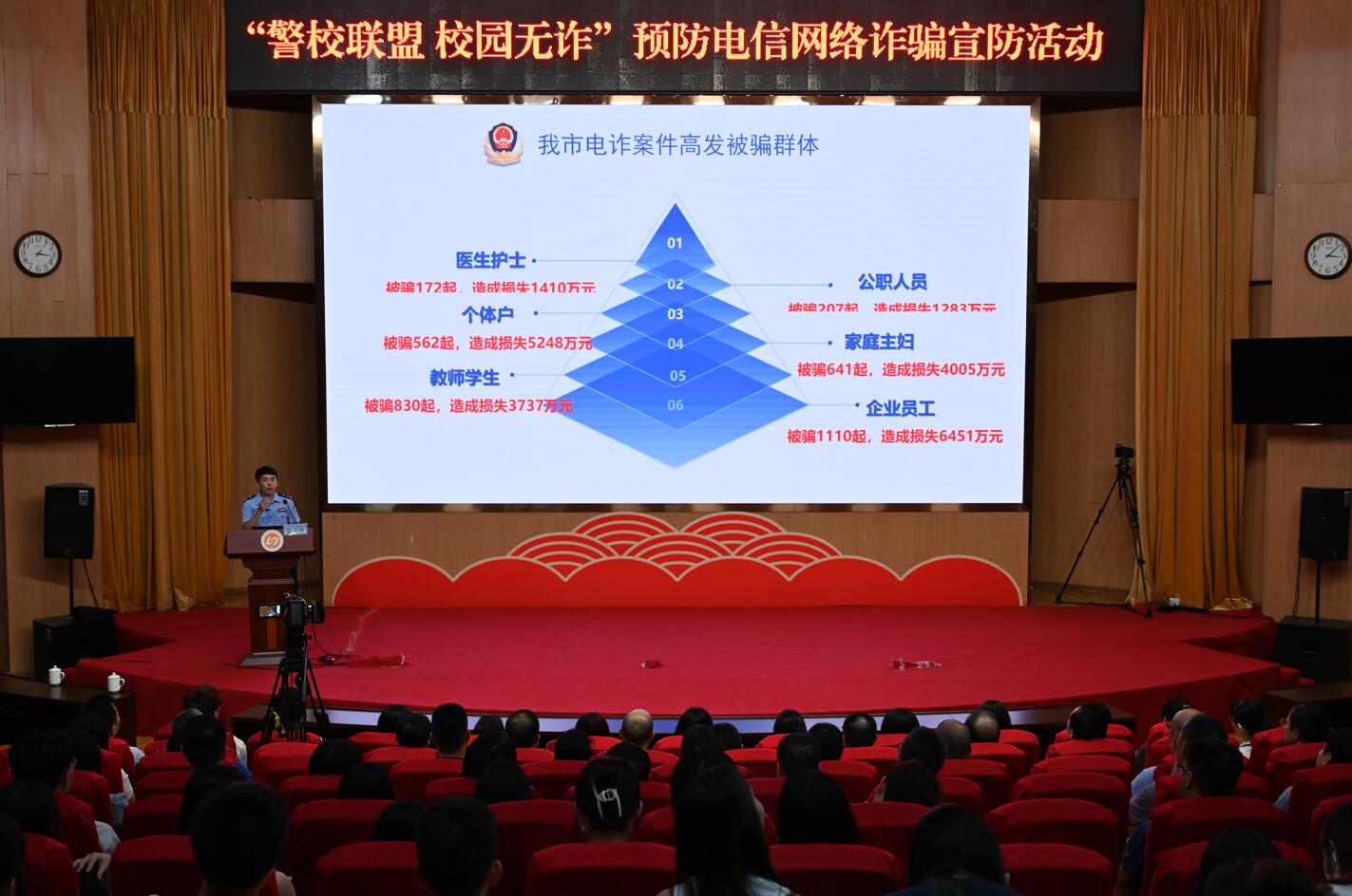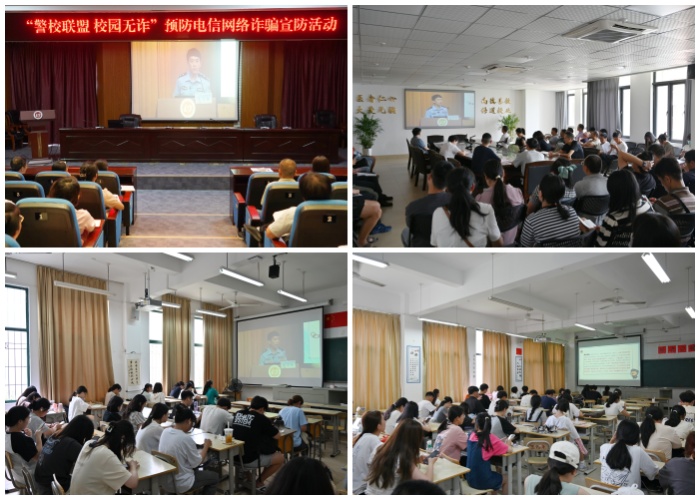 为切实保障师生财产安全,有效遏制电信网提升师生防骗能力,6月11日下午,我校联合花椒直播市公安局、东侨公安分局、农商银行花椒直播分行以线上线下结合的形式面向全校师生开展以“校警联盟、校园无诈”为主题的知识宣讲活动。活动邀请长期从事网络电信诈骗打击和宣防工作的花椒直播市公安局张思诚警官主讲。校内设1个主会场,123个分会场,全体师生共11000余名参加,实现了我校师生的全覆盖。