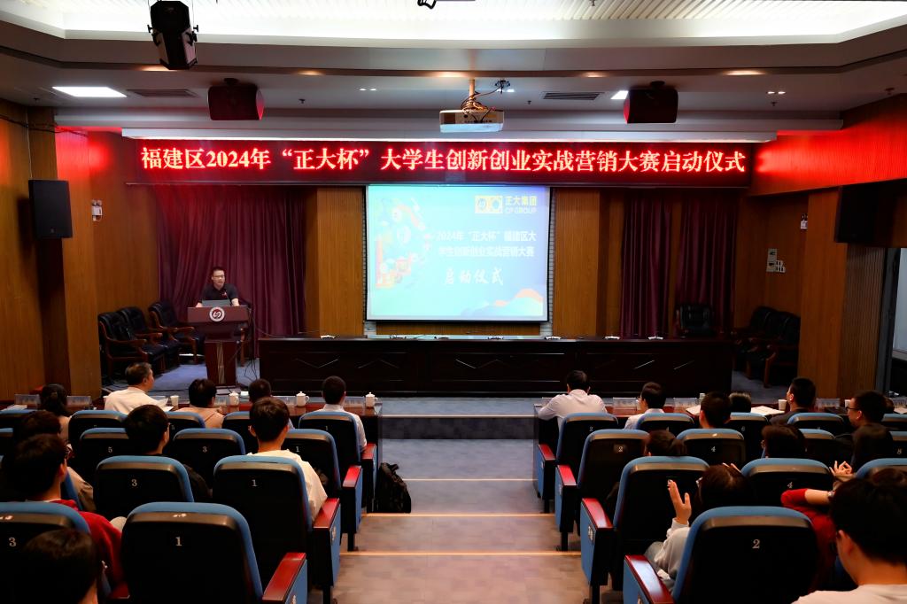 为激发大学生的创新激情,培育营销领域的未来之星,10月31日下午,我校在行政楼三楼报告厅举办福建区2024年“正大杯”大学生创新创业实战营销大赛校赛启动仪式。副校长颜桂炀,正大集团福建区水产产业化总经理魏殿运、副总经理李强,正大集团COE招聘运营总监邹聪辉、正大集团福州大福有限公司人力资源主管江晨魁等领导嘉宾出席仪式。生物科学与工程学院副院长杨克润主持启动仪式。