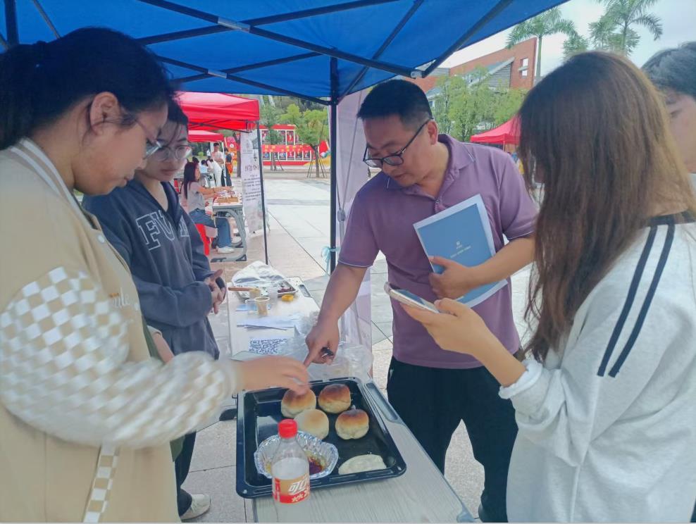 活动以游戏、展览、科普等形式开展,新颖有趣的活动吸引了许多师生驻足参与。在“食安智趣坊”摊位,参与者们通过辨别食物变质的信号、参与食品猜猜猜、区分常见食品搭配禁忌,深入了解食品安全知识;在“‘鱼’你来辨”活动中,工作人员向参与者介绍常见海洋鱼类,让师生在学习和活动中加强对海洋生物的了解;在“糕兴一点”,“你品,你细品”等活动中,通过美食品鉴让同学们在乐中学,在学中乐。
