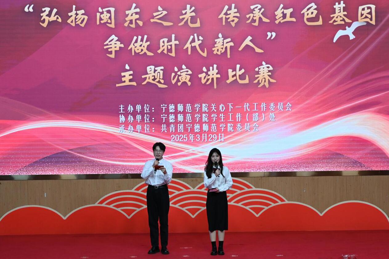 3月29日下午,由校关心下一代工作委员会主办,学工部(处)协办,校团委承办的“弘扬闽东之光、传承红色基因、争做时代新人”主题演讲比赛决赛在图书馆报告厅举行。校关工委常务副主任谢仲榛出席活动,各二级学院关工委成员与学生代表400多人参加活动。