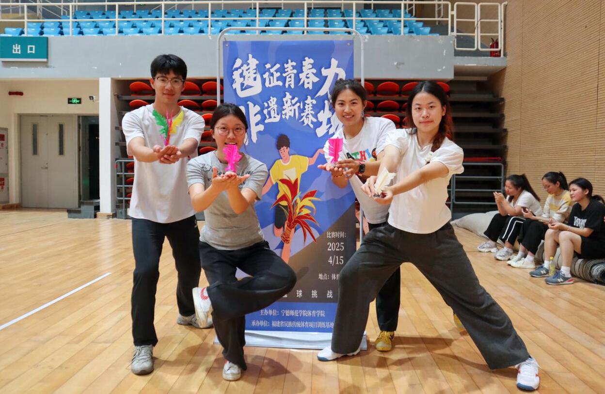 以体育人强内涵,文化聚力迎评估。为扎实推进本科教育教学审核评估,进一步丰富校园体育文化活动,4月15日下午,由体育学院主办、福建省少数民族传统体育项目训练基地承办的“民族传统体育进校园”毽球挑战赛在校体育馆圆满落幕。本次赛事以“毽证青春力,非遗新赛场”为主题,分为男子组、女子组和混合组,设置技术赛、计时赛和混合团体赛三大项目,吸引了来自全校100余名学生参与。